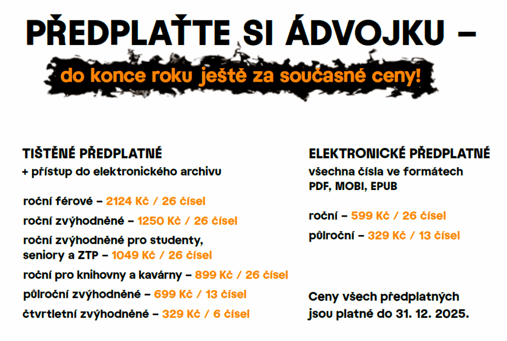 Stačí si vybrat z níže uvedených možností, zakoupit předplatné a zaslat zaplacenou fakturu spolu s titulem vybrané knihy na adresu distribuce@advojka.cz.