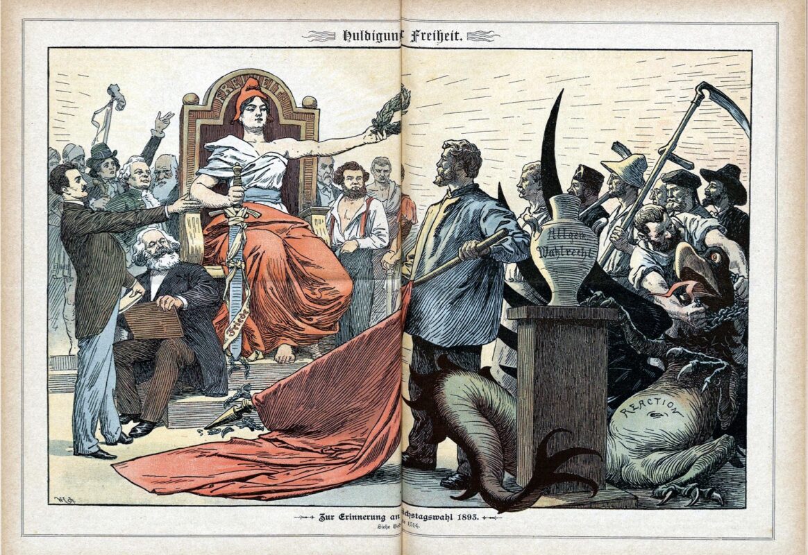 „Pocta svobodě. Na památku voleb do Říšského sněmu v roce 1893.“ Ilustrace Hans Gabriel Jentzsch