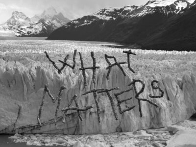 Tereza Sýkorová: What Matters, objekt spletený z kůže a umístěný na ledovci Perito Moreno v Argentině, 2024